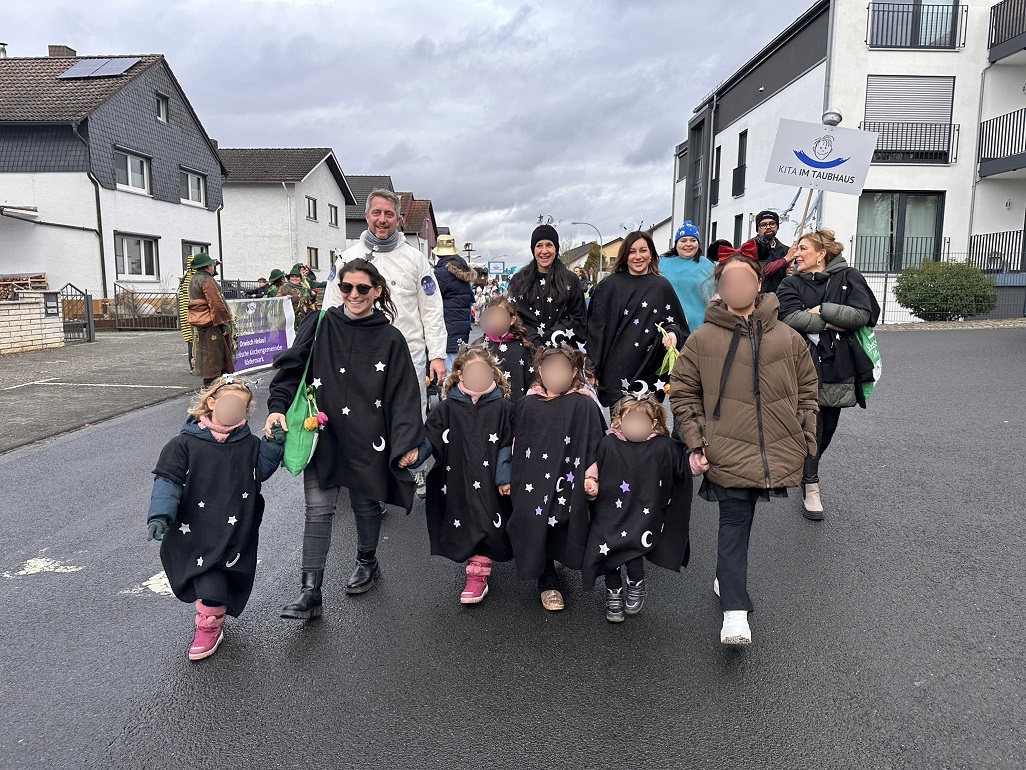 Mit der Kita im Taubhaus schauen wir auf eine echt „abgespacte“ Faschingssaison 2026 zurück. Zusammen mit allen städtischen Kitas haben wir das Weltall nach Rödermark gebracht und die Straßen in ein tolles Sternenmeer verwandelt.