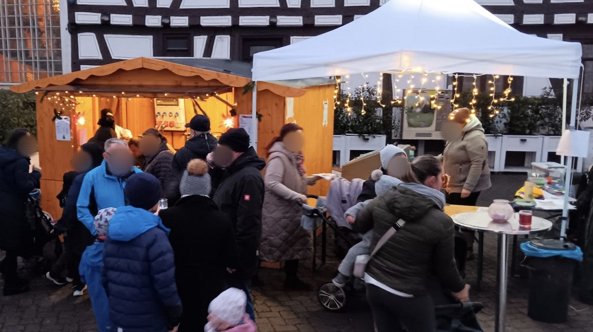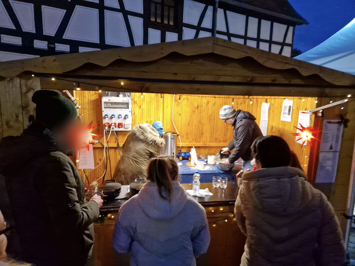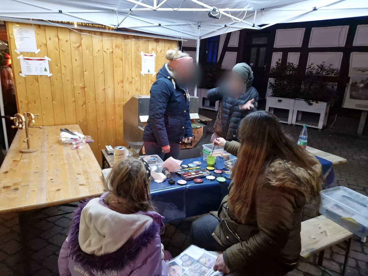 Unser Stand bot vieles: Selbstgebastelte Geschenkideen der Kinder, frisch gebackene Waffeln, warme Brezeln und duftender Glühwein. Außerdem konnten sich die kleinen Besucher beim Kinderschminken in bunte Motive verwandeln lassen. Die Atmosphäre war herzlich und lebendig; Lichter, Gespräche und der Duft von Waffeln zogen zahlreiche Besucher an.